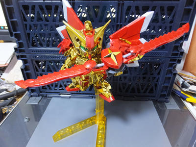 LGBB スペリオルドラゴン SDガンダム 素組み 2017年06月09日 こんばんは、にょん。です。今回から雑素組みレビューをやっていきたいと思います。(「雑」ってのがミソ)素組み第1号はレジェンドBBのスペリオルドラゴンです!素組みは素組みでも模型屋さんの展示品を購入したので既に組んであるという…!しかし、いやぁカッコいい。キンラキンですよ。これ使ってリアルスペドラ作ったらカッコイイだろうなぁ…。その際はメッキ落とすけどね!ま、先の話です(ぉぃ)まずは標準装備な感じで。 お次はツインブレード。これがいいんだよ…! 合体させると金龍の弓に。 後ろから。なかなかのボリューム。 ううん、カッコイイ。やはりスペリオルドラゴンはカッコイイですな!というわけで雑レビューでした!このレビューは基本的に今後作りたいリアルタイプの素材とかをメインに紹介すると思うので(違うのもあるかもしれないけど)よろしくお願いします!ガンプラランキング [0回]PR