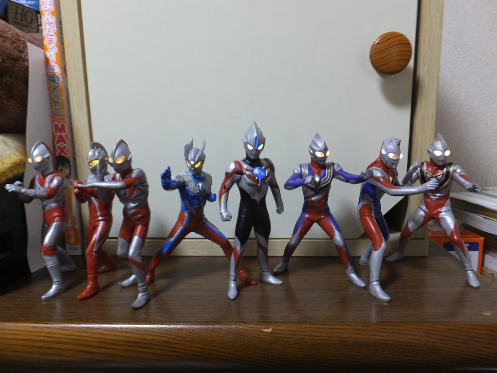 アルティメットルミナス 壱・3弾 フィギュア・おもちゃ 2017年05月24日 さてさて、発売からしばらく経ってしまいましたが、いつもの雑レビューでございます。ちょっといろいろあって随分ブログから離れてましたが、よろしくどうぞ。まずは先日発売になったアルティメットルミナス第3弾からウルトラマンゼロ&ジャックです。 我らがウルトラマンゼロはやはりカッコイイ。しかし、ちょっと頭部の造形がダルい気も。 ジャック先輩は流石のカッコよさ…惚れる。「てぃやぁーッ!!!」って言いそうな感じがよく出ています。 ジャックのバストアップ。これまたいい感じの造形ですね。 ゼロを後ろから。 ジャック後ろ。 アルティメットルミナス1弾のウルトラマンと2弾のセブンと絡ませてみる。最高…! プレミアムバンダイに頼んだ割にレビューは雑のまた雑なガイアさん。平成3部作集合でサクっと紹介。 オーブオリジン。「ウルトラマンさん!ティガさん!!」あれ、配置逆だったか?他のウルトラマンと内部の発光装置の色が違います。 最後に、今までの全員集合で。いやー、こりゃ最高だわ…次のメビウスとエースが待ち遠しい。 怪獣たちもぞくぞく出るようですが、私のお財布事情的にちょっと購入は差し控えですね…。以前のアルティメットモンスターの時のような感じで怪獣も出してくれるといいのですが、下手にリレー発光とか組み込まれると高いので組み込むならアルティメットルミナスの発光ユニットでお願いしますよ…!光らなくてもいいので大怪獣バトルのゴモラ欲しいですね。ではでは、雑レビューでございました。 [0回]PR