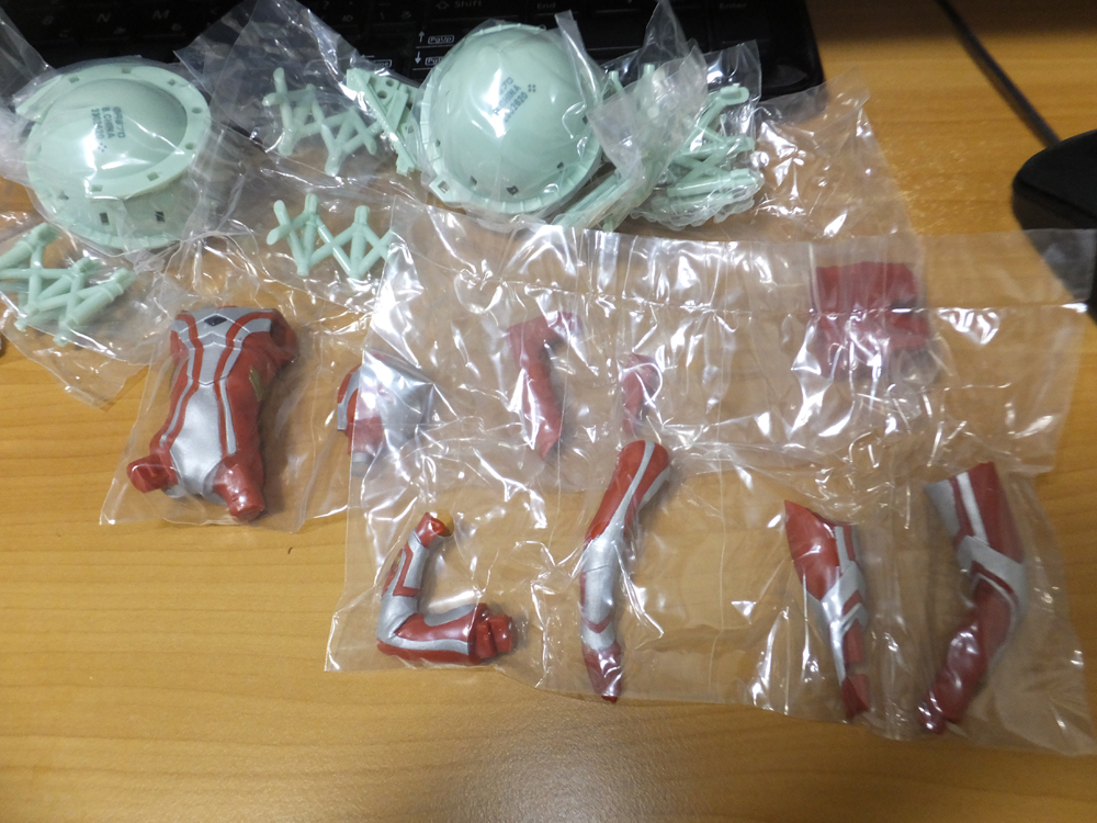 アルティメットルミナス04! フィギュア・おもちゃ 2017年09月06日 久しぶりの更新でございます。ここ最近息子の扁桃腺除去手術のための付き添いで病院につきっきりだったので更新ができませんでした。さて、題名にもある通りおなじみ、アルティメットルミナスですよ!!息子の入院中の発売日だったのもあり、いやぁ、探した探した!八月中に入荷するかと思いきや、結局九月一日の入荷だった模様。でゅわ、紹介するぜ!(雑だけど)今回の目玉はなんといってもガスタンク!(ほんとかよ)二三個ならべるだけで、海辺の雰囲気が楽しめます! ちなみに、今回は2000円突っ込みまして1回目 メビウス2回目 ガスタンク3回目 ガスタンク4回目 エースという感じでした。ザ・結果オーライ!まずはカプセルをあけて… まぁ、いつものこんな感じですよ。では、エース様から雑レビゥ。このどっしりとした佇まい…そんじょそこらのウルトラ戦士には出せません…! 横から。横の状態だとイマイチ目が光ってるように見えないのがちょっとマイナス。(画像の状態で光らせています) セクシー(?)な背面。 続いてメビウス。「セアッ!」って聞こえてきそうだわ。顔は以前のアルティメットソリッドよりも似ていると思う…ポーズは変わり映えしないけどw 横から。メビウスブレスクリアパーツだったらなと思ったけど、やっぱりそんなこたなかった。 背面。 エースアップ。イマイチな顔に撮れたwww メビウスアップ。こっちはハンサムだなぁ。 並んでもらいました。やはりウルトラ兄弟はいい…。この二人が出たことで超ウルトラ8兄弟が再現できるようになったんだよな…!今後暇があれば撮る予定!! アルティメットルミナス05はタロウとコスモスだそうで、待ち遠しいですな…!!ではでは。 [0回]PR