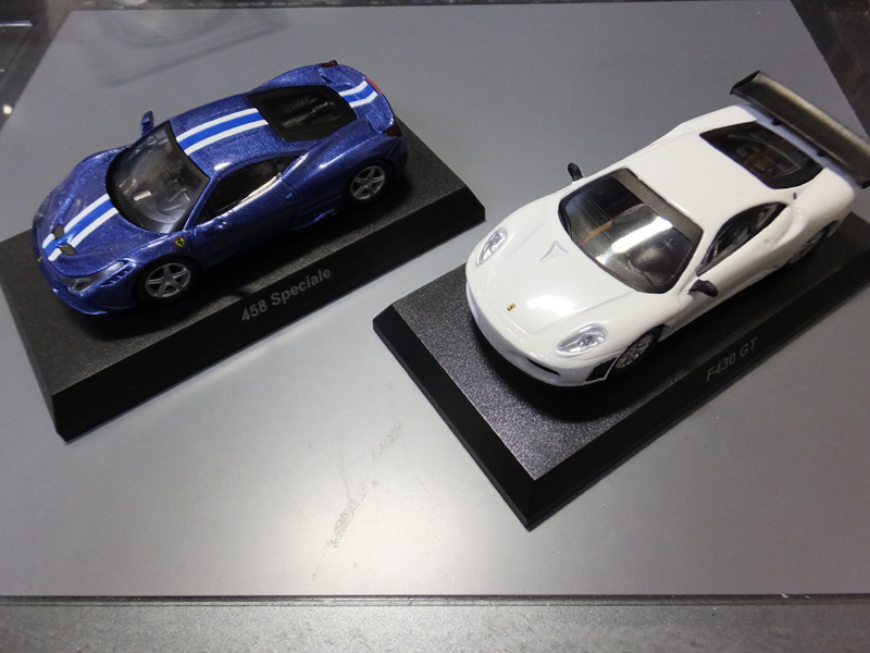 サークルK 京商フェラーリ10 ミニカー 2014年12月02日 さてさて、本日は12月2日。京商フェラーリを摘んでまいりやした…!近場のサンクス狙いだったのですが、まさかの未開封BOXがででんと置いてあるじゃありませんか!狙いは458スペチアーレ赤でしたが出たのは青。まぁ、カッコいいのでよし!とりあえず四つ摘んで、458青 F430白 575GTC赤 328GTB赤でした。458とF430以外はさようならかな。残す二台を並べて つづきはこちら [0回]